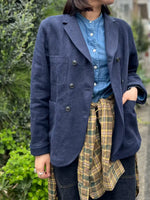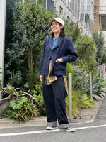 The navy colour offers a perfect balance of crispness and suppleness from the hemp. It also has a slightly cool feel, making it ideal as a light jacket for spring and summer.