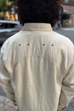 We chose the ivory MEDICAL SHIRT COTTON LINEN DUNGAREE to style, a midsummer item not listed in the catalogue.