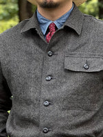 So, our styling also needs to be fully geared towards spring and summer, and we've put together a classic look using the FRENCH WORK JACKET - MIX BLACK CHAMBRAY, which has been very popular both in-store and online.
