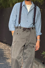 Wearing:US NAVY SHIRT HANK DYEING: Size 52PARATROOPER PANT PIGMENT: Size 36US ARMY SUSPENDERBEANIE WOOL