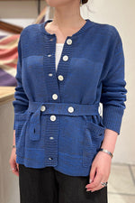 The BASEBALL KNIT CARDIGAN is a cotton knit with a linen-like crisp feel. It's easy to put on and take off, and a handy piece to have on hand to cover yourself from the air conditioning.