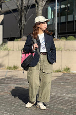 I paired it with a memorable MALLORY JACKET for traditional look. A Cabourn Rebourn EMBROIDERY BB MESSAGE CAP and backpack are essentials to complement the outfit.